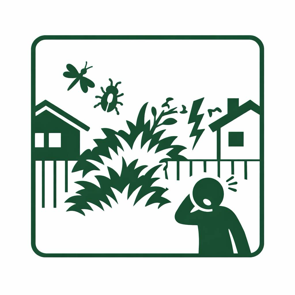 害虫の発生や枝葉の越境による、ご近所トラブルが発生します。遠方にお住まいの場合、対応が遅れがちになり、さらに問題が深刻化します。